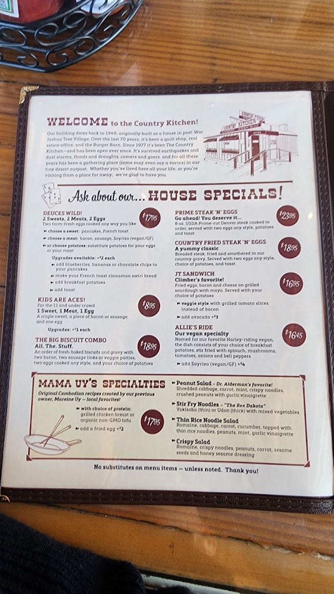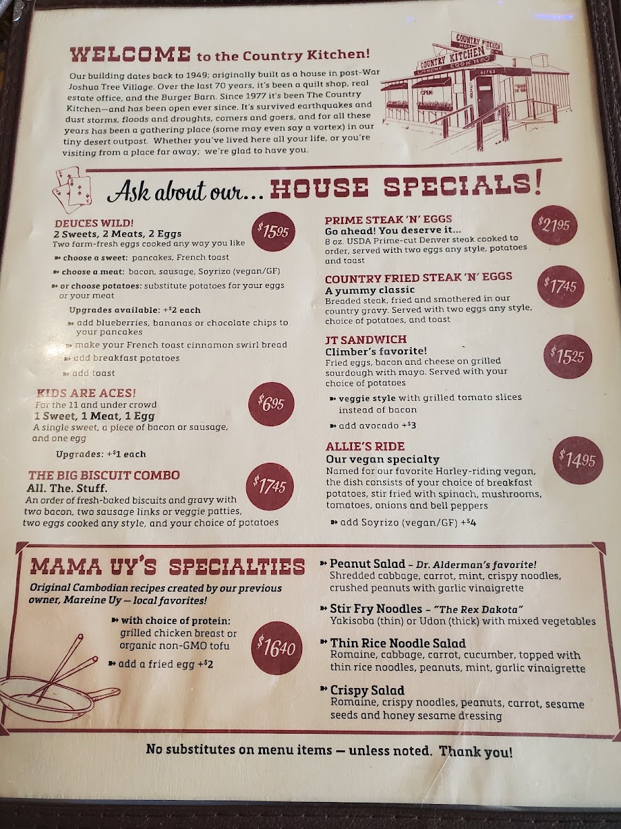 So, whether you're an adventurous traveler exploring the magic of Joshua Tree or a local in search of a cozy spot for breakfast, JT Country Kitchen promises to provide a cherished dining experience that will keep you coming back for more.